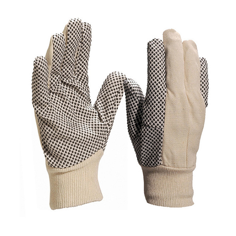 PVC点塑棉质手套,270g棉质衬里,PVC点塑至掌背,有效防滑同时对于虎口易撕裂部分有效加强,佩戴舒适,灵巧轻便,适用于普通劳动防护使用。