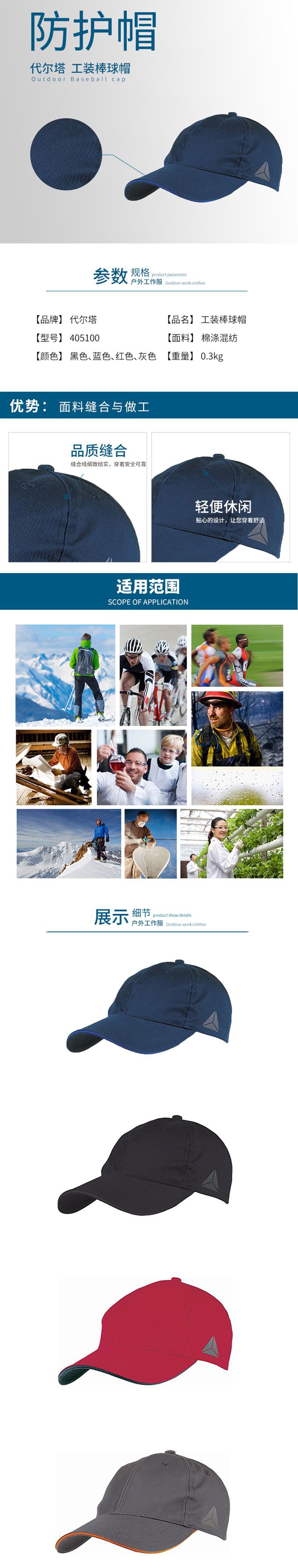 产品名称:代尔塔 405100 马克2系列棒球帽 涤棉加厚透气舒适轻便劳保工作帽