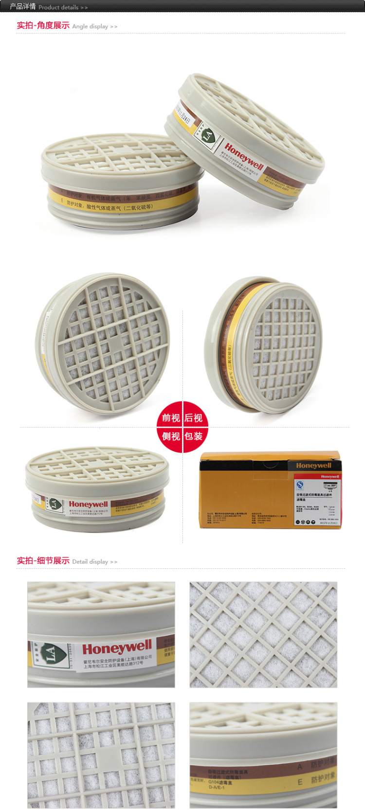 霍尼韦尔 G104 B290系列滤毒盒防有机气体防蒸汽 酸性气体滤毒盒