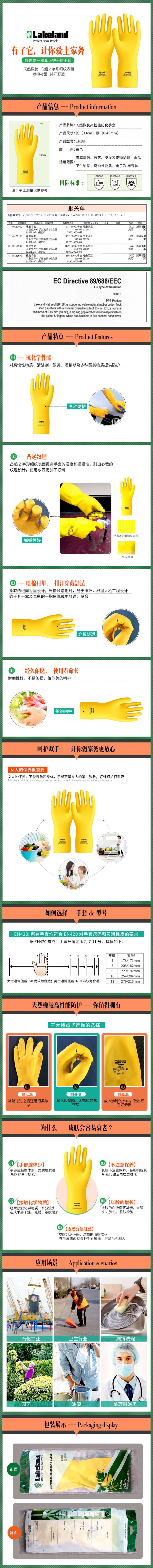 产品名称:雷克兰 ER18F 橡胶高性能防化手套化工加厚耐磨防滑防护手套