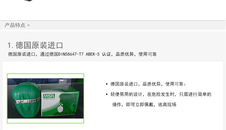 miniSCAPE微型逃生呼吸器专为逃离毒气泄漏的区域而设计。可用于防护ABEK类化学毒气,如、、、二氧化硫、氨气等。产品通过德国DIN58647-T7 ABEK-5认证。特别适合于化工厂,化学品仓库,为化物运输,实验室,工厂参观来宾及运转班工人应急备用。存放时间长达十年。