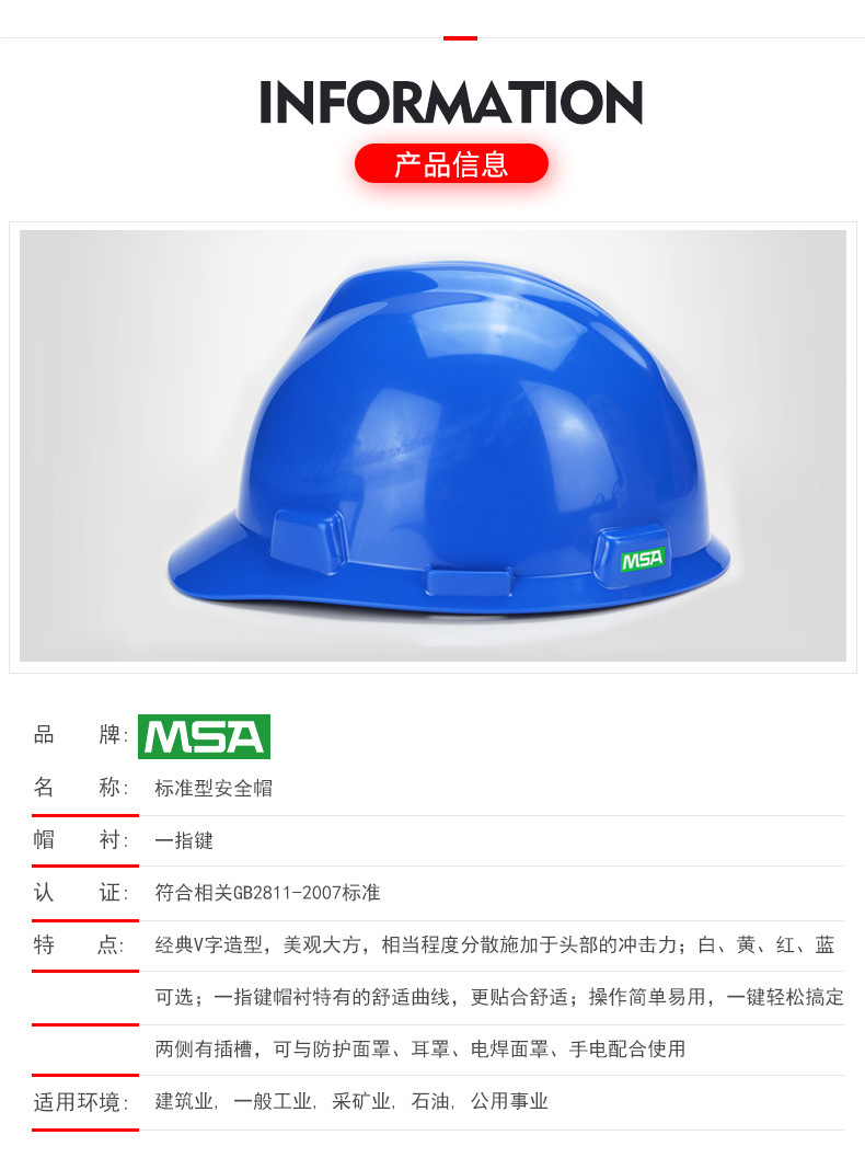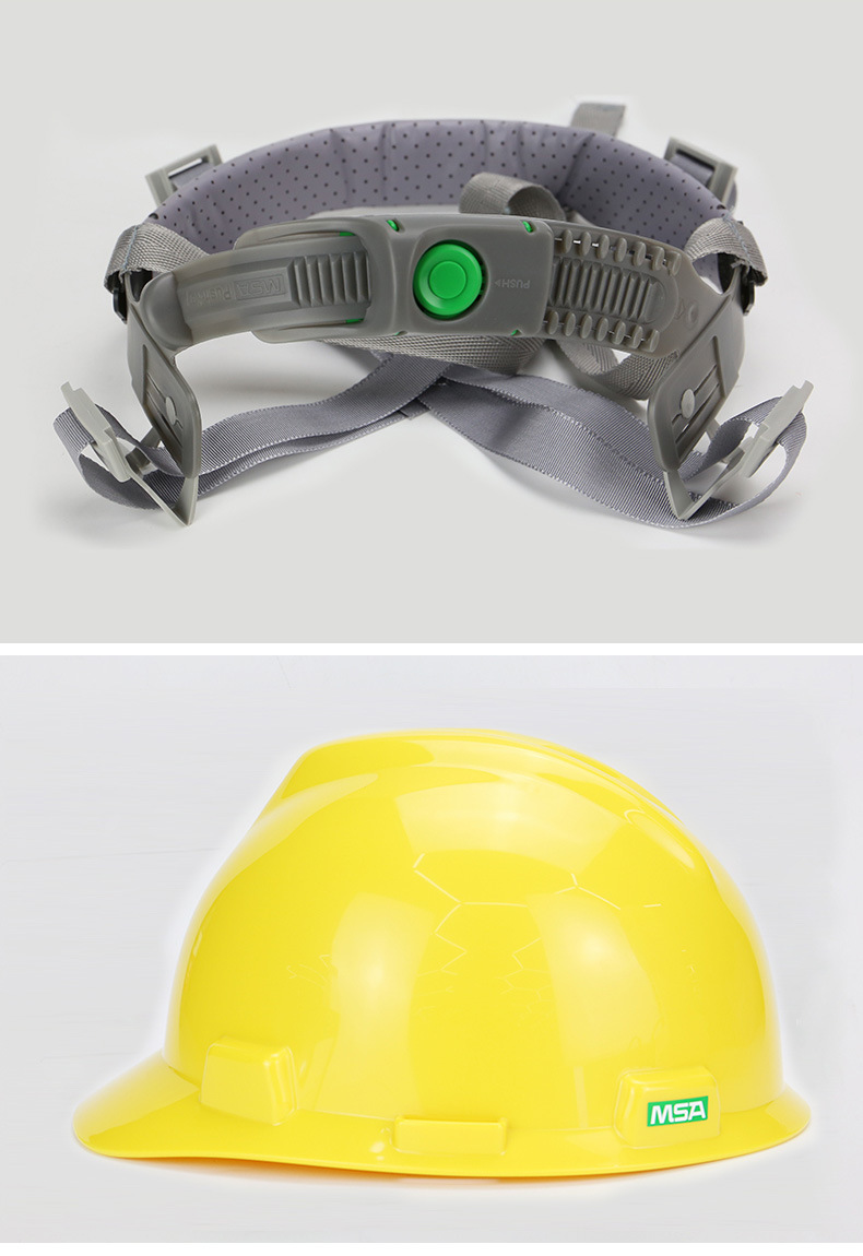 产品名称:梅思安MSA 10146452 V-Gard 标准型安全帽(白色 PE帽壳,一指键帽衬 PVC吸汗带 D型下颏带)