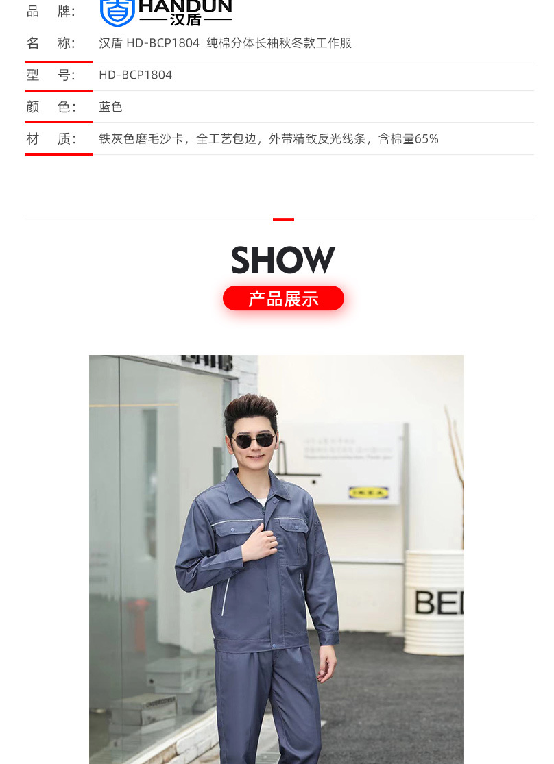 汉盾 HD-BCP1804 分体长袖秋冬款工作服 蓝色 M码-XXL码