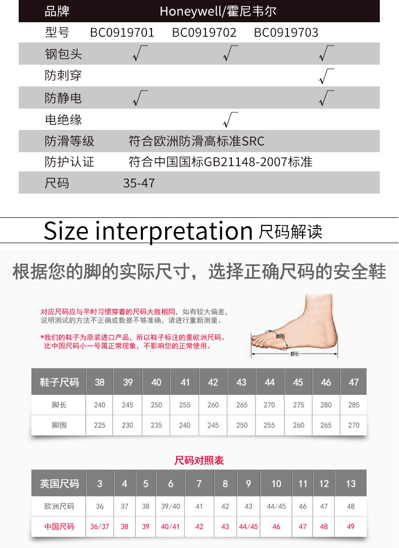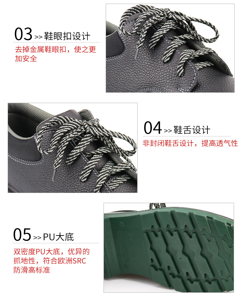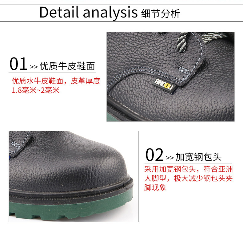 —采用加宽钢包头,符合亚洲人脚型,大大减少钢包头夹脚现象
