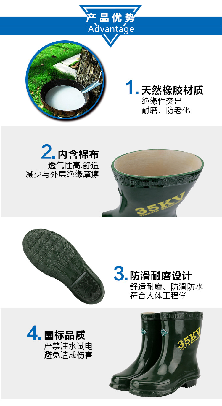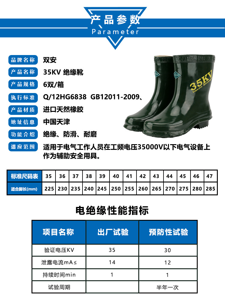 双安 35KV绝缘靴 电工防触电橡胶雨靴 中筒电工靴