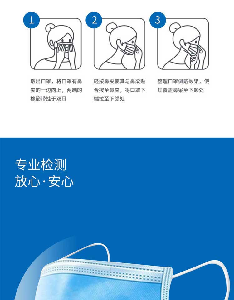 汉盾 批发蓝色透气网红一次性口罩 含熔喷布无纺布三层安全防护 医用非灭菌型17.5cm*9.5cm*16cm 耳带绳