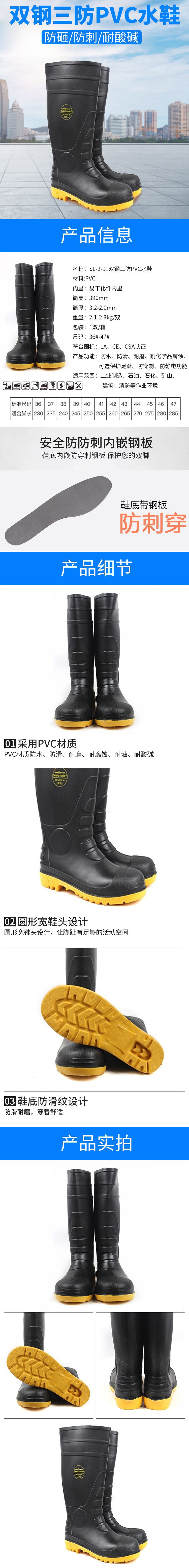 莱尔 SL-2-91 防砸防刺穿耐酸碱防滑耐腐蚀高筒防护靴