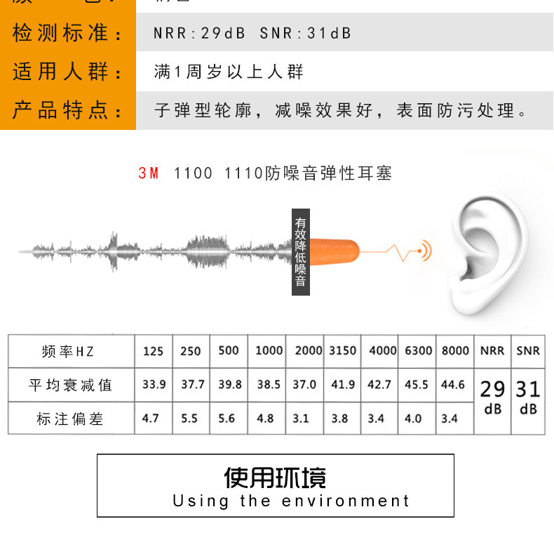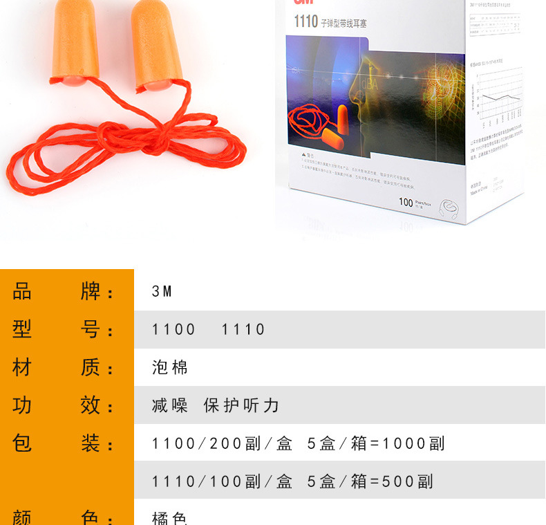 【产品名称】:3M 1110 耳塞防噪音耳塞睡眠呼噜降噪男女用学习旅行出差隔音静音