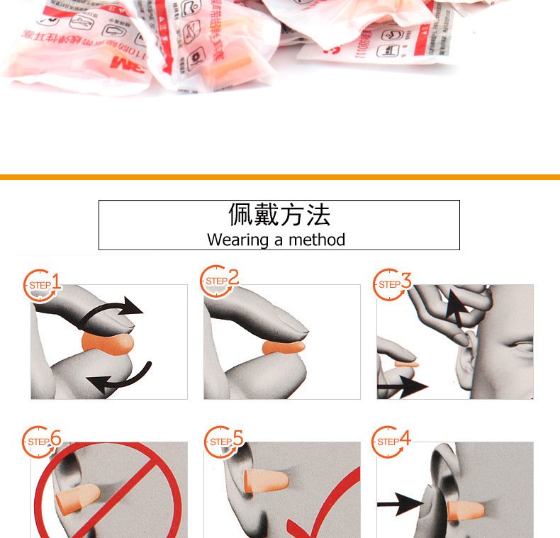3M耳塞 另有型号1100和硅胶类反复可清洗耳塞1270型。