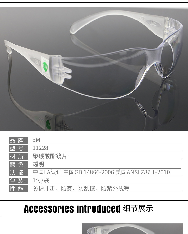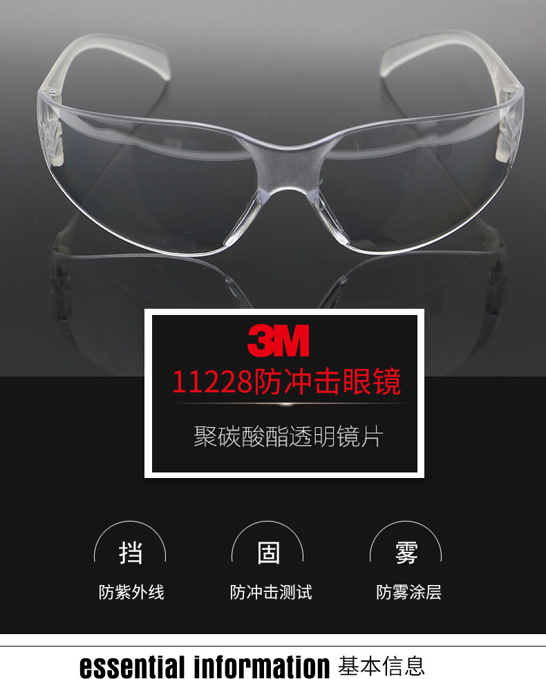 3M 11228 经济型防尘防风沙防冲击防飞溅透明防护眼镜