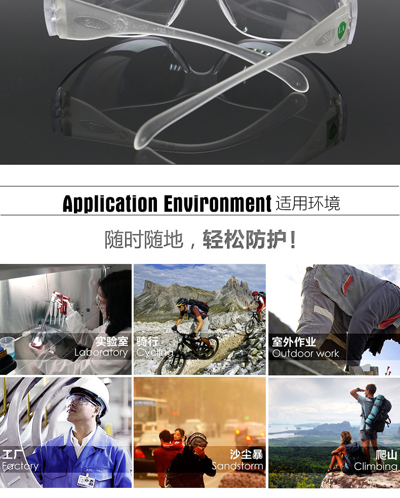 3M 10434 防尘防风沙骑行防刮擦防雾抗冲击防护眼镜