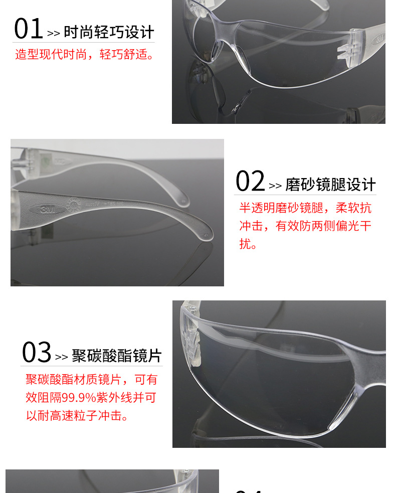 3M 10437 透明镜片加强防刮擦防冲击防风沙防护眼镜