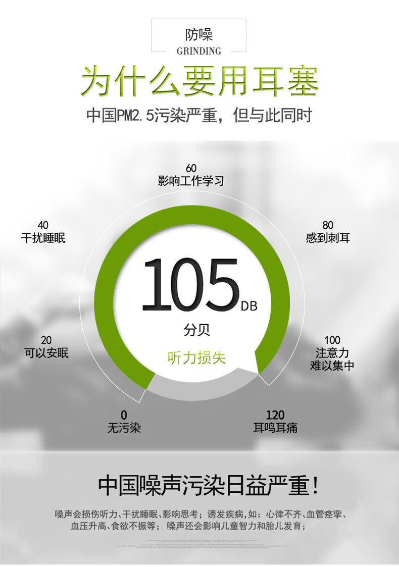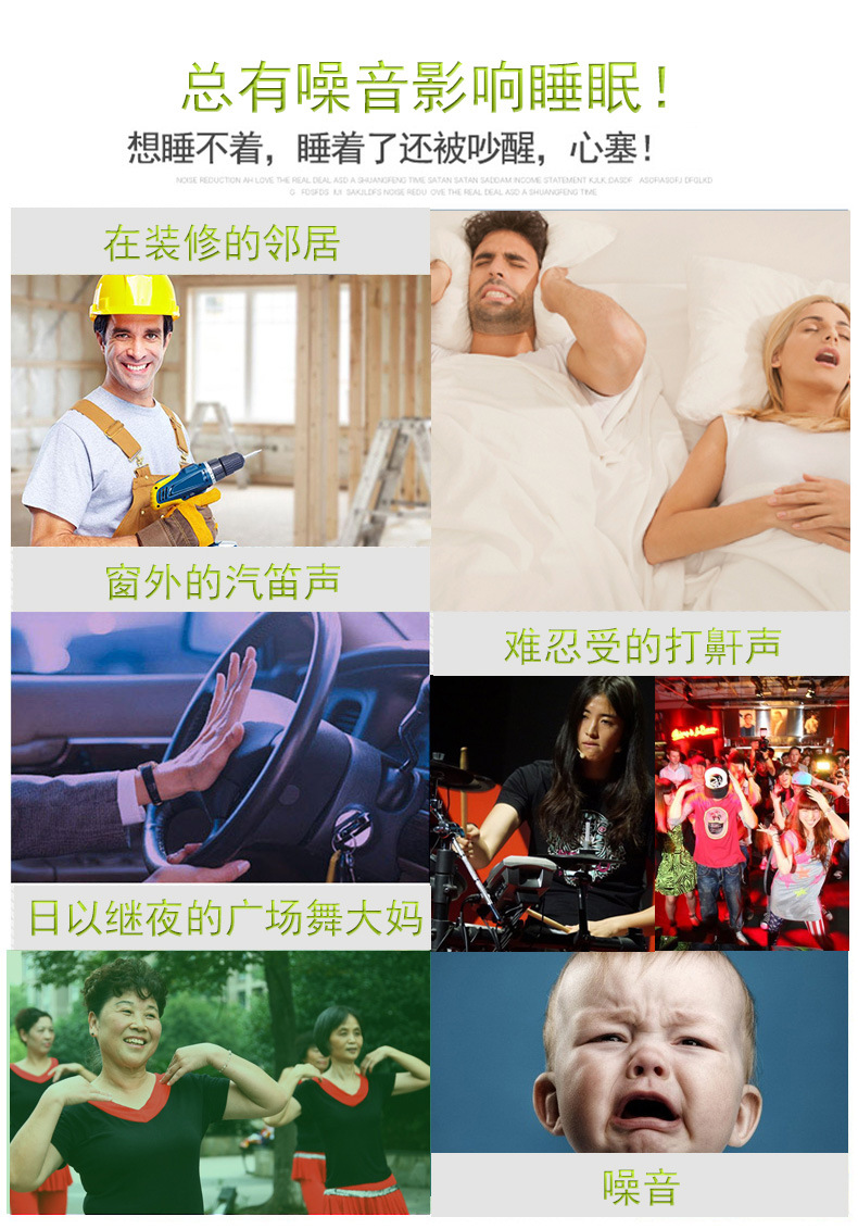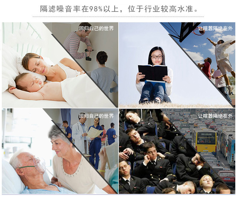 隔绝声音进入中耳和内耳(耳鼓),集中精神、保护听力。在家里、寝室、自修教室、乘车船飞机旅行、工程、建筑工地、繁华市区等处免受噪声干扰的好帮手,防噪音耳塞经正确佩戴后能显著 降低周围环境的噪音污染。