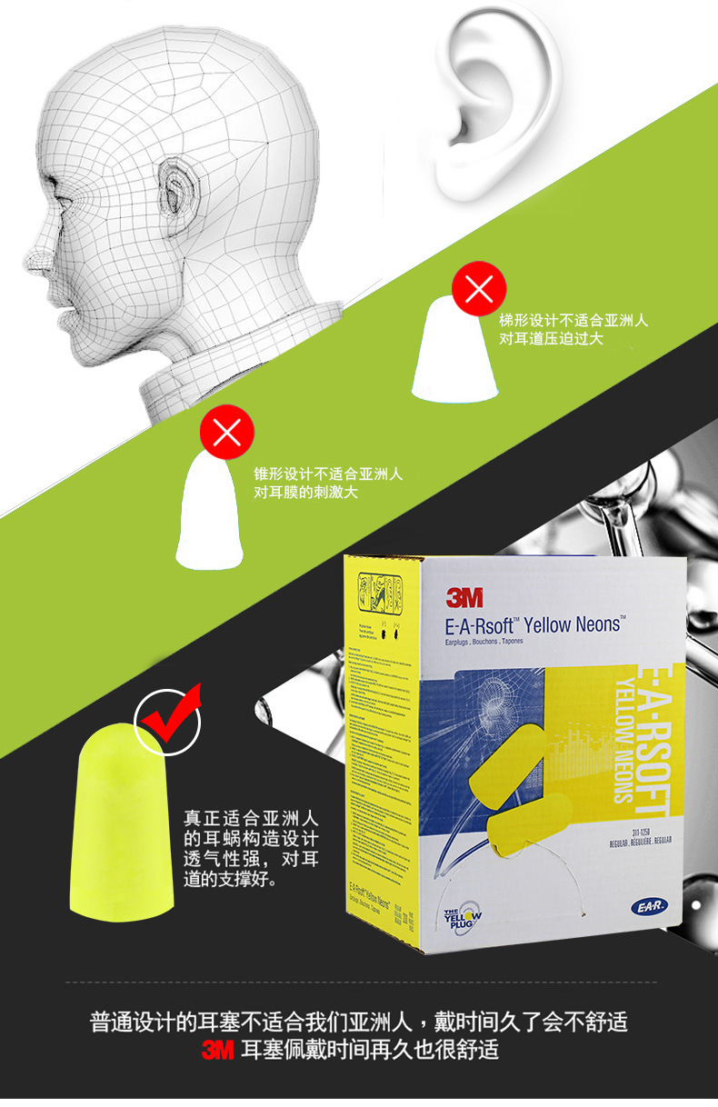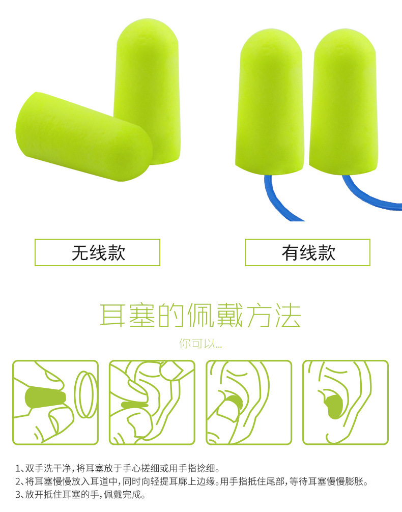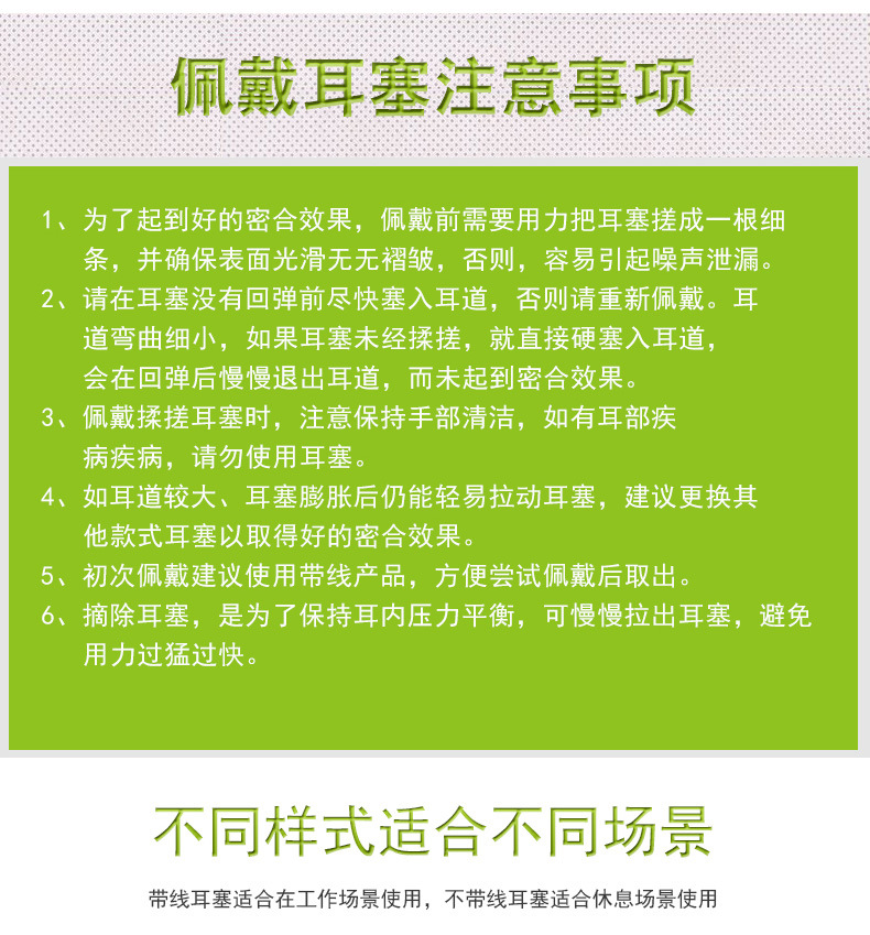 1.佩戴耳塞前请选择一款柔软,舒适的耳塞产品;