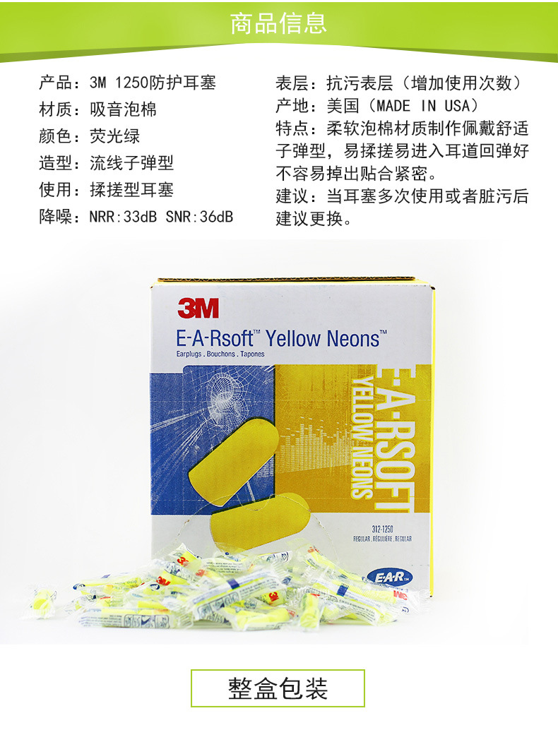 【产品名称】:3M EAR311-1250 高降噪型带线耳塞睡眠睡觉工作学习防噪音耳塞