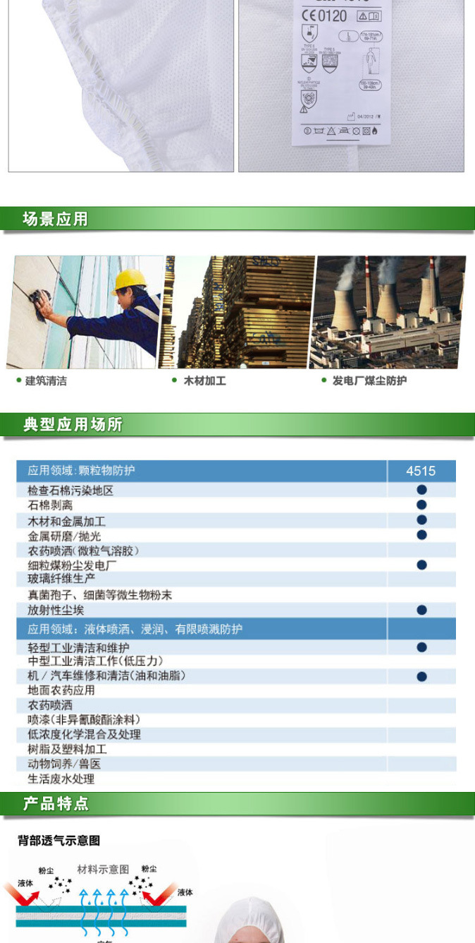 3M 4510 白色带帽连体式防护服 防液体喷溅防颗粒物防护服