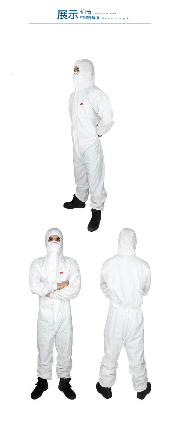 弹性头罩、腰间、脚踝设计,方便行动。编织袖口,增加穿着舒适度;