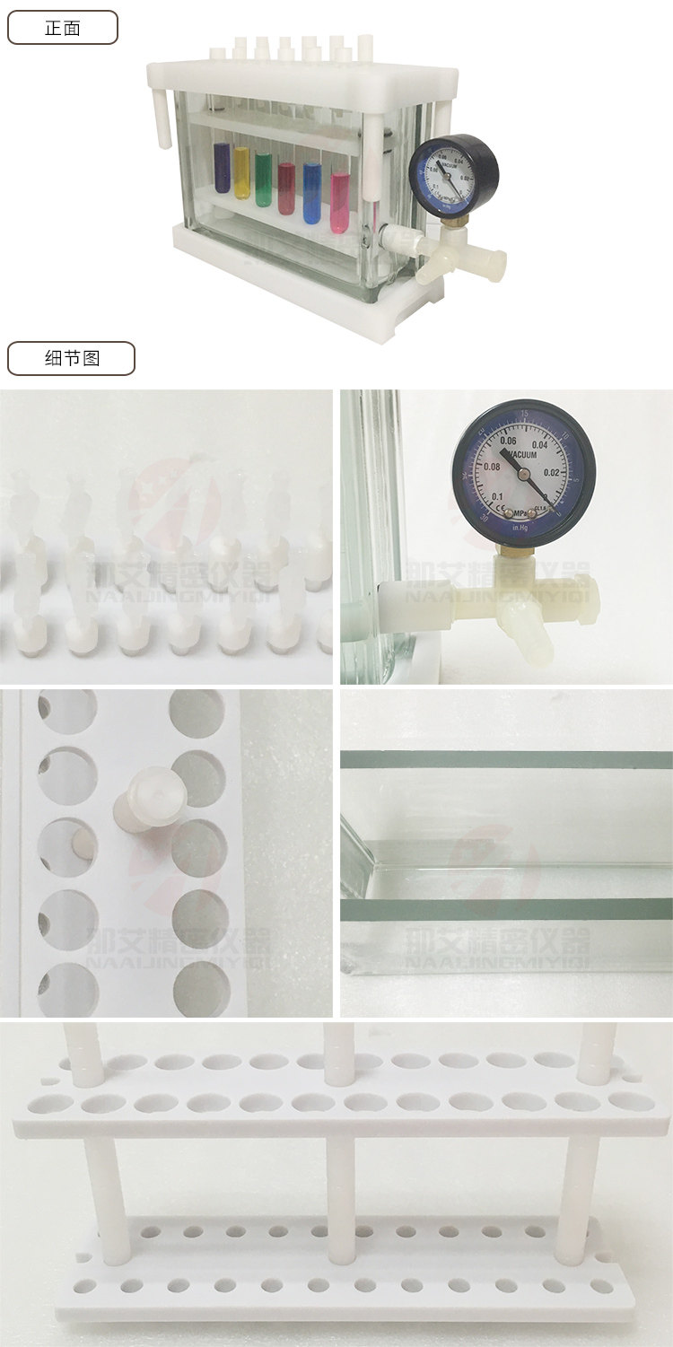 7、聚四氟材质试管架,耐腐蚀且可调节高度,适合多种规格试管;