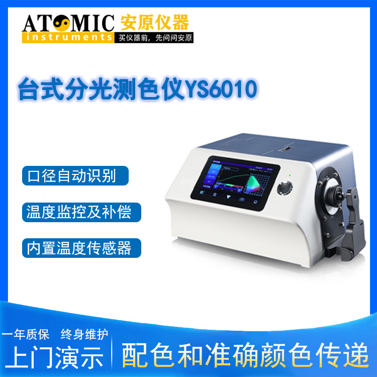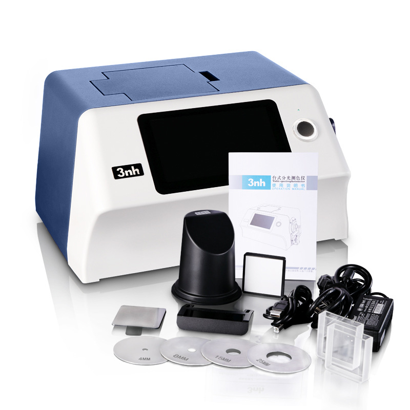 YS6010是3nh公司独立开发的完全拥有自主知识产权的国产台式光栅分光测色仪, TFT真彩7inch电容触摸屏、全光源、照明方式:反射D/8°、透射D/0°(包含UV/排除UV测量) 测量颜色准确稳定、存储容量大、PC端强大扩展功能,用于实验室颜色准确分析与传递。