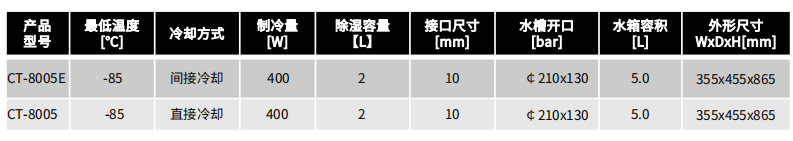 ● 可以达到-85℃的低温,直接冷却。