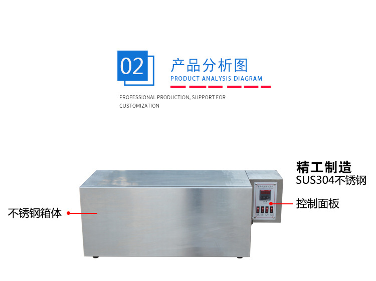 本装置适用于涂料等非金属材料的有水暴露老化实验。由于日光中的紫外线是引起高聚物氧化