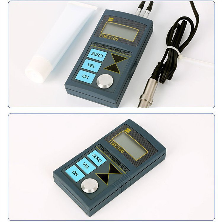 2100A超声波测厚仪测量厚度的原理与光波测量原理相似。探头发射的超声波脉冲到达被测物体并在物体中传播,到达材料分界面时被反射回探头,通过超声测量超声波在材料中传播的时间来确定被测材料的厚度。