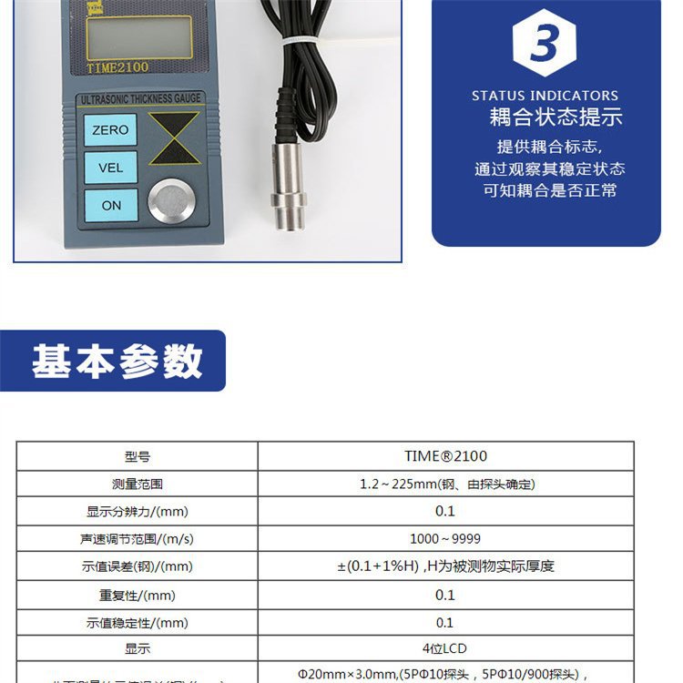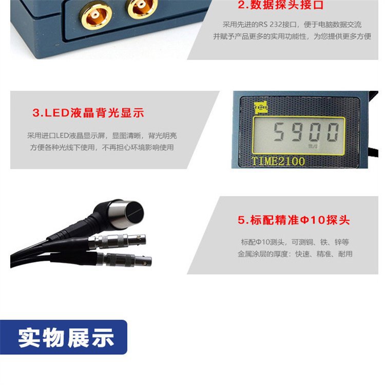 此仪器可用在工业生产领域中对各种材料或零件作超声测量,其另一重要方面是可以对生产设备中各种管道和压力容器进行监测,监测它们在使用过程中受腐蚀后的减薄程度。