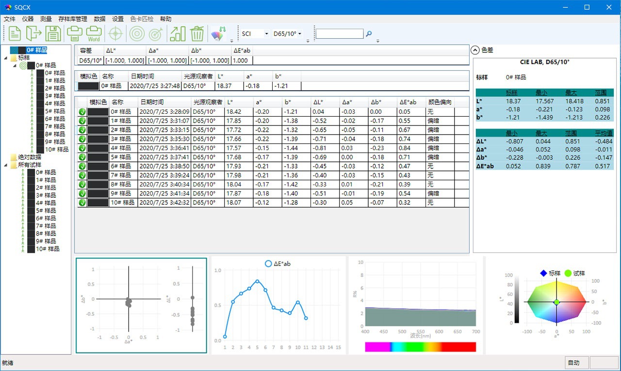 DS-360分光测色仪搭配的SQCX品质管理软件,适用于各个行业的品质监控和颜色数据管理。将用户的颜色管理数据化,比较颜色差别,生成测试报告,提供多种色空间测量数据,定制化客户的颜色管理工作。