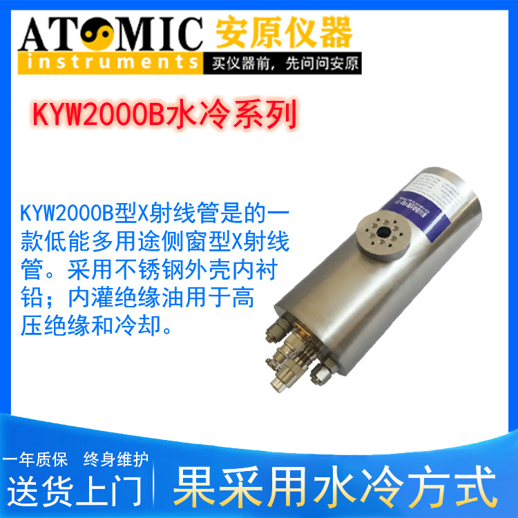 KYW2000B型X射线管是的一款低能多用途侧窗型X射线管。采用不锈钢外壳内衬铅;内灌绝缘油用于高压绝缘和冷却。此类X射线管阳极接高压,阴极接地。该类X射线管可以替代进口同类产品在相应的仪器上使用。