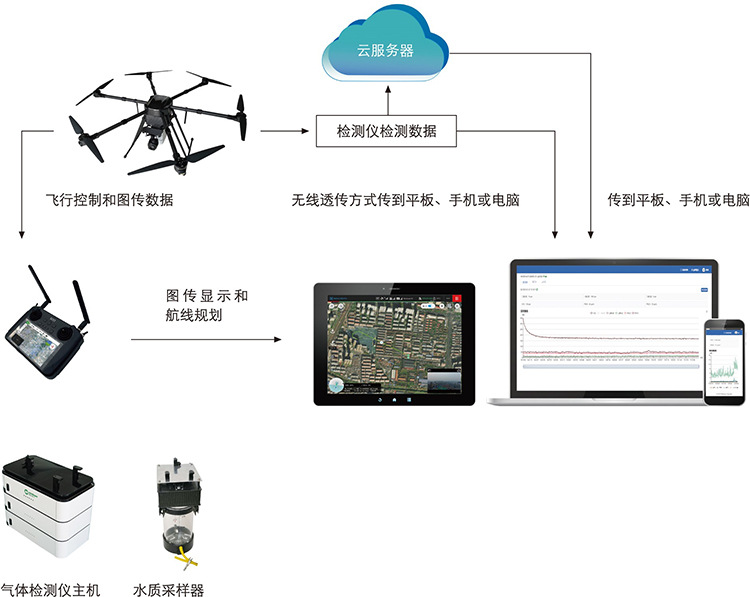 可视化的分析软件和云平台,实时查看污染物变化曲线图、二维污染物分布航迹图、二维污染物分布热力图、三维污染物分布航迹图和三维点云污染物分布图;