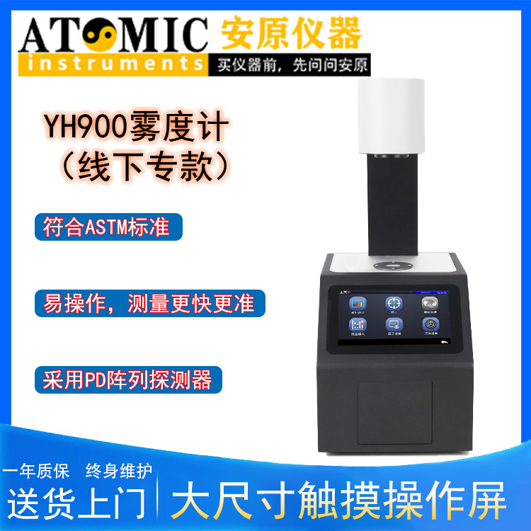 YH900雾度计配置大尺寸触摸操作屏,操作简单方便,采用PD阵列探测器,满足CIE V(λ)2度视觉响应可实现高精度和可重复的透射率和雾度测量。USB数据输出装置,可与实验室系统对接。