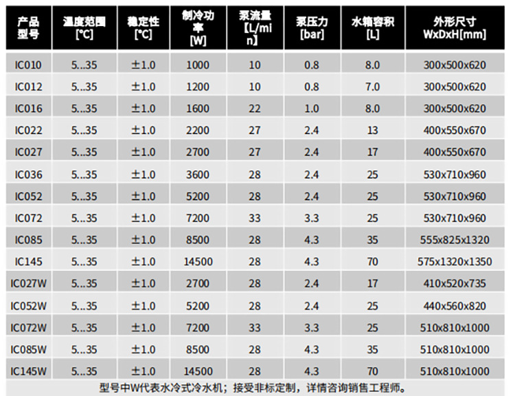 ●双温双控机主要用于激光行业,如激光熔覆设备、激光焊接、激光切割等设备●纯水冷水机适用于对水质要求较高的设备如激光治疗仪、不同功率的固体YAG、光纤、半导体激光器