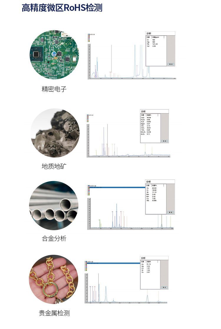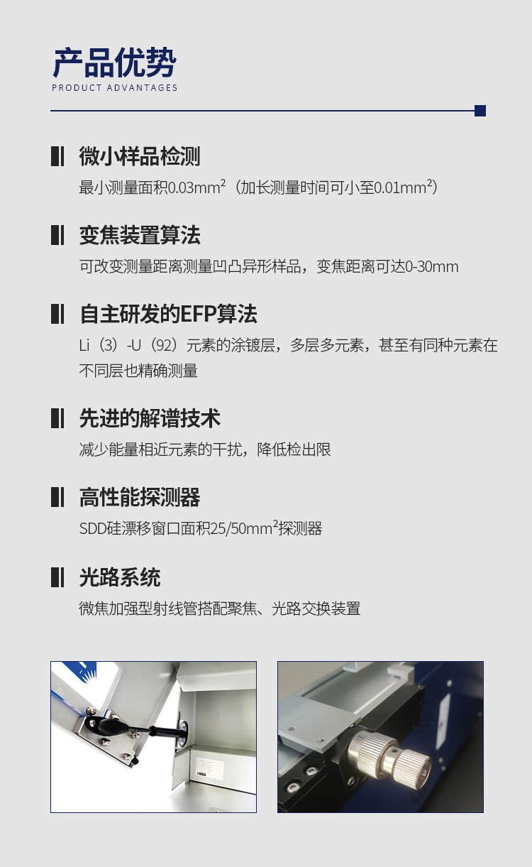 微小样品检测:最小测量面积0.03mm2(加长测量时间可小至0.01mm2)
