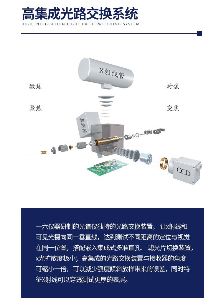 光路系统:微焦加强型射线管搭配聚焦、光路交换装置