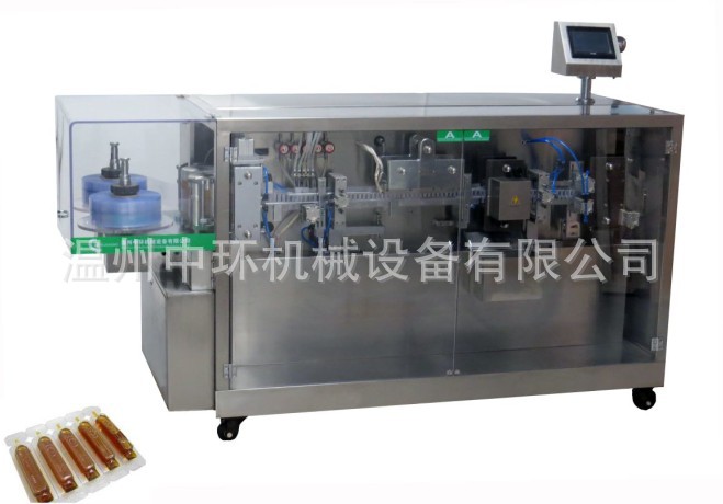measurement error is small.The main technical parameters: Maximum depth forming:12 mm Number of:15-20 times/min Filling quotas:Two filling head filling at the same time Packaging materials:PVC/PE (0.2 0.4) x 120 mm The filling capacity:5-15 ml/branch Power supply is the total power:3.5 kw voltage:Three-phase 220 v / 60 hz (three-phase 380 v / 50 hz) Weight (kg):300 kg Overall dimensions (length x width x height):2300 * 750 * 1700(mm)