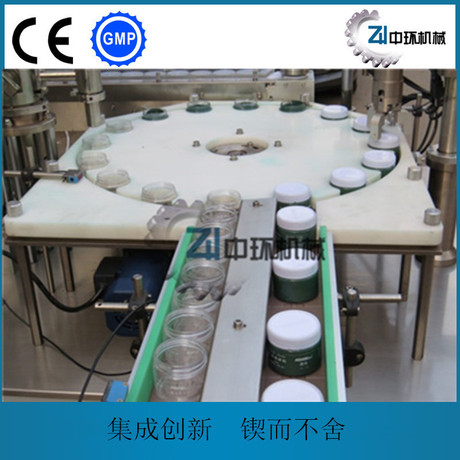 机械手式灌装机是我公司近年来开发研制之新产品,以高精度活塞灌装(特殊场合采用陶瓷泵),并具有自动灌液、自动加盖、旋盖多种功能。该机配置了国内的专用机械手,保证外盖可靠地进入瓶口,从而实现完全自动化。符合国家GMP标准
