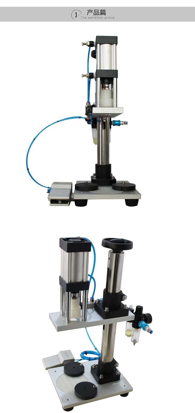 气动香水扎口机是香水灌装,封口的组成部分之一,用于各种规格 香水瓶阀门盖封口.封口直径;.8.5--20--22(MM)。结构慨要与工作原理 .本机主要有封口作业机构与气控系统两大部分组成。以压缩空气为动力源。采用气路一次封口作业。 封口合格率;百分之九十九。