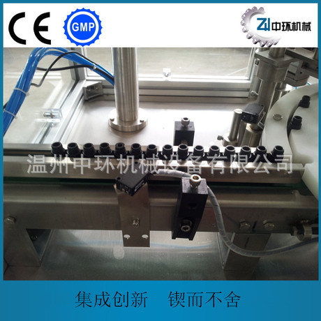 More functions: automatic bottle transit, automatic bottle detecting(No bottle, no filling) and filling, and automatic cap setting and capping. It's quite suitable for high error materials .Comparing with oversea products, this one is more competitive. The machine meets the GMP standard.