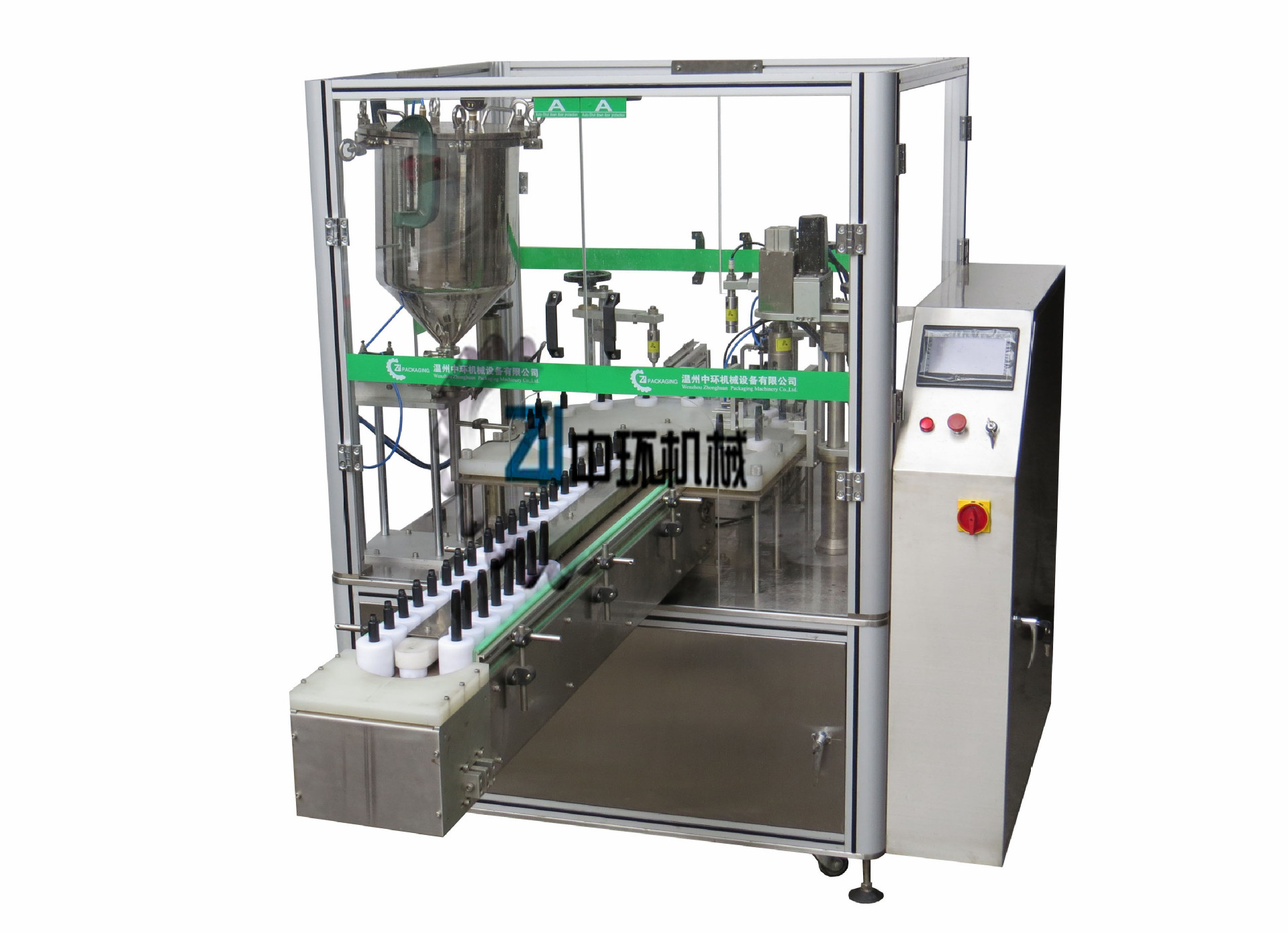 温州中环机械设备有限公司是研制、开发、生产各种类型的液体、粉剂、膏体、流体、半流体包装机械设备的企业,主要产品有:软管灌装封尾机系列、灌装旋盖联动机系列、直线灌装机系列、旋盖机系列、覆膜封口机、彩妆灌装设备、粉末灌装设备、气雾剂灌装设备等.到目前为止,拥有出口CE认证和数项新型实用专利,我公司已经拥有国内客户100多家,国外客户400多家,所生产的产品80%出口海外,质量和诚信受到了国内外客户的一致称赞。我们将把"集成创新,锲而不舍"的精神发扬光大,严于律己,敢为人先,以崭新的姿态、饱满的精神为新老用户提供更好、更完善的服务。公司产品畅销国内外地区,持续、改进、提高、发展、不断满足市场、客户的新需求将是我们永的主题和对客户的忠诚承诺!
