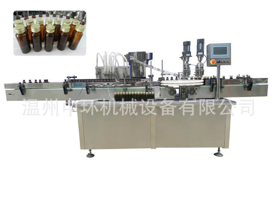 This machine is the production line in the host, and is also the traditional oral liquid filling, cover, cover rolling integration equipment, advanced design, reasonable structure, can automatically complete the filling, capping, and rolling screw cap and other processes, applicable to the pharmaceutical, food, health care products such as various liquid materials filling. Eight head of filling, double rolling screw cap with bottle filling, bottle cover and other functions. This machine is stable and reliable and easy maintenance, can be used alone, can also use the connection. The machine is in full compliance with the new GMP requirements.