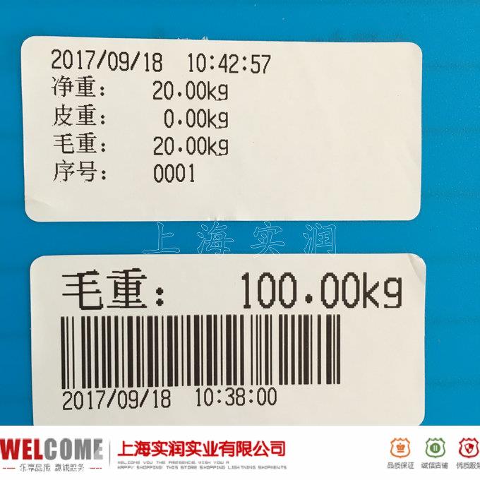 不干胶打印电子秤秤体由不锈钢秤盘,双层加固秤架,不锈钢立杆,一体式不干胶打印显示器组成;双层加固秤架四角配有运输保护螺丝,在运输过程中可保护传感器不受外界重压而损坏;秤架底部四脚支撑,可根据地面的平整度来调节秤体水平;高精度称重传感器,精度高,质量好,长期使用不坏;一体式不干胶打印显示器,显示器上自带不干胶打印机,可一键打印称重数据,打印格式可选。