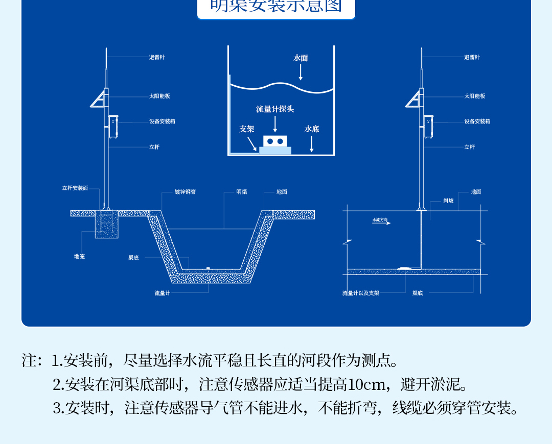 雷达多普勒流量计 市政管网污水流量检测 河道水位高度流速测量