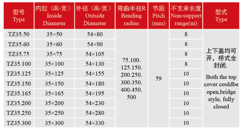 3.如果你的拖槽已做好,在内部尺寸合用后请注意拖链的外宽,拖链的外宽要小于拖槽的宽度方可适用,否则无法移动.