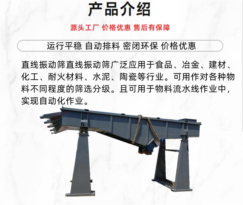 钢砂筛选机 三层 四层直线振动筛 石英砂震荡筛其两电机轴相对筛面有一倾角,在激振力和物料自重力的合力作用下,物料在面上被抛起跳跃式向前作直线运动,达到筛选、分级目的,直线振动筛具有耗能低、产量高、结构简单、易维修、全封闭结构,无粉坐溢散,自动排料等优点,更适合于流水线作业。