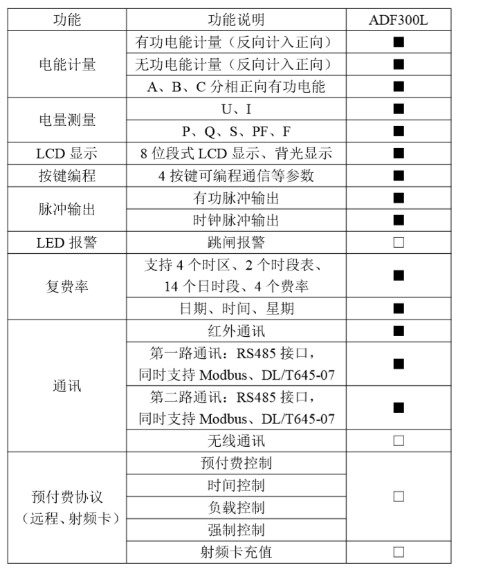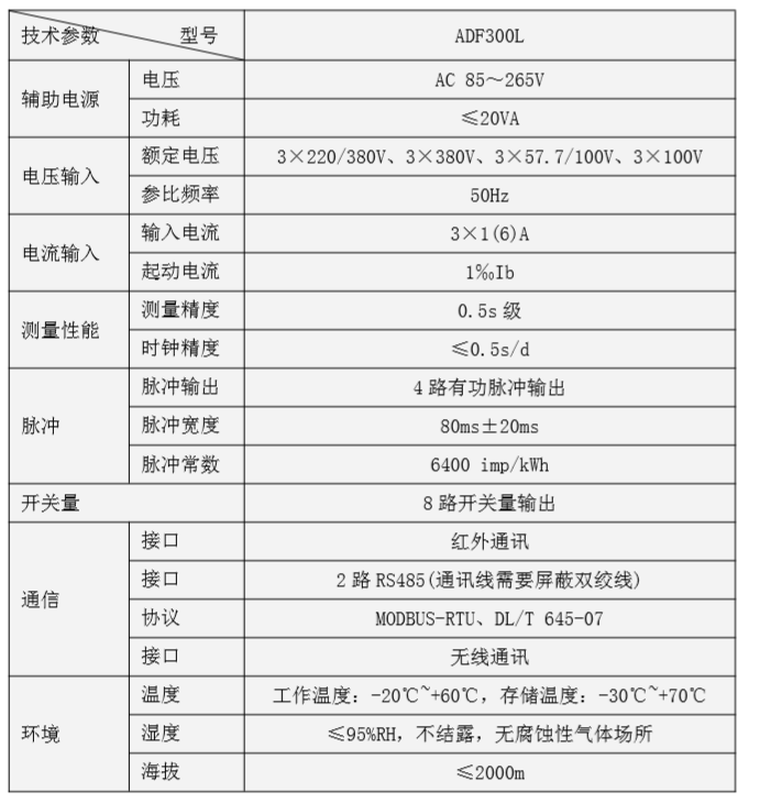 ADF300L 系列多用户计量表可以计量 4 路三相。该系列计量表因准确度高、集中安装、集中管理、互不干扰等优势深受小区、学校、企业等的青睐。计量表符合国标 GB/T 17215.322-2008。
