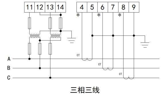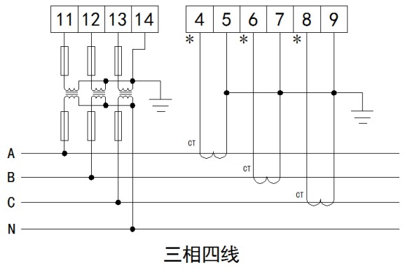 4.5接线说明ADW300和ADW300W均可采用三相四线经电流互感器接入、三相三线经电流互感器接入、三相四线经电压电流互感器接入和三相三线经电流电压互感器接入四种接线方式。