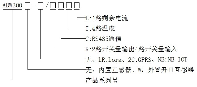 2产品型号规格及功能特点 2.1 ADW300无线计量仪表命名规则