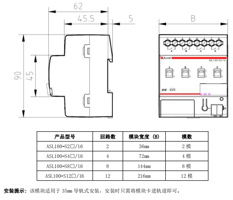ASL100 系列开关驱动器(以下简称模块),是 Acrel-bus 智能照明控制系统输出控制模块。该驱动器和其 他模块(诸如智能面板、干接点等)连接到一起,组成一套完整的控制系统,实现大型公建、楼宇照明系统的智能控制。该驱动模块采用先进的单片机技术,是具有高稳定性、高可靠性的智能控制模块,产品符合国标GB-T20965-2013《控制网络 HBES 技术规范_住宅和楼宇控制系统》的规定。该模块在通信端使用总线电源提供30V的直流电压用于模块供电和系统的通信,在输出端通过继电器控制回路的通断,同时可以检测回路电流,通过参数设置,实现故障报警、超载检测等功能。