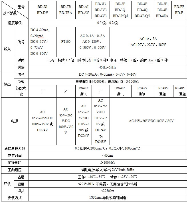 BD系列电力变送器是一种将电网中的电流、电压、频率、功率、功率因数等电参量,经隔离变送成线性的直流模拟信号或数字信号装置。产品符合GB/T13850-1998、IEC-688标准。