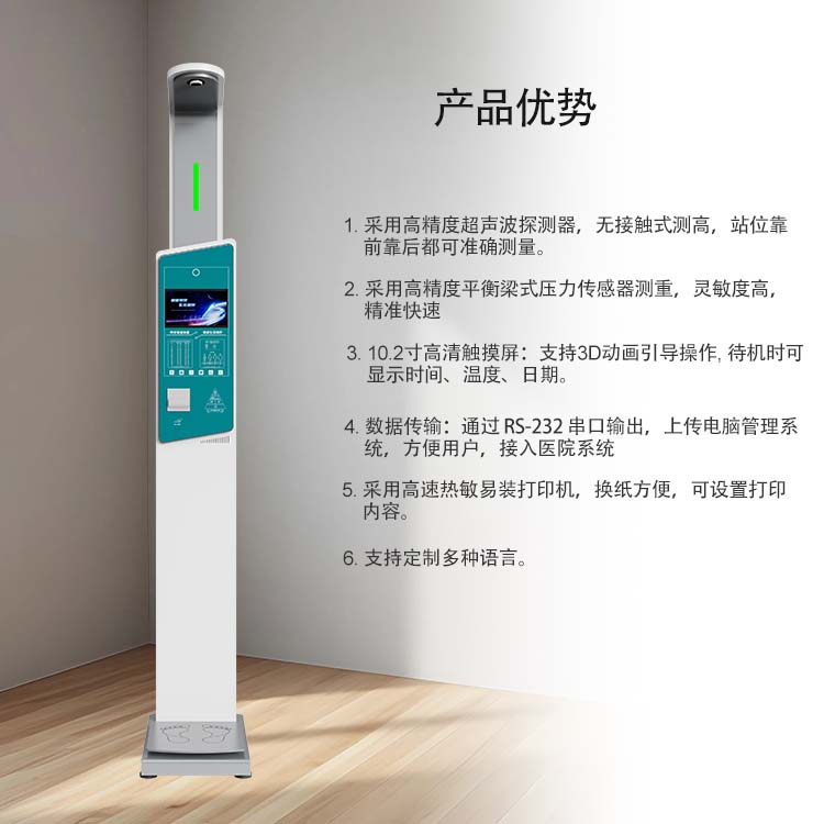 采用超声波探头与高精度梁式压力传感器,确保身高和体重测量的准确性。